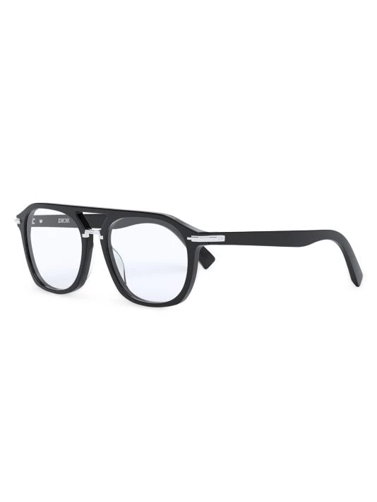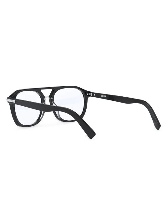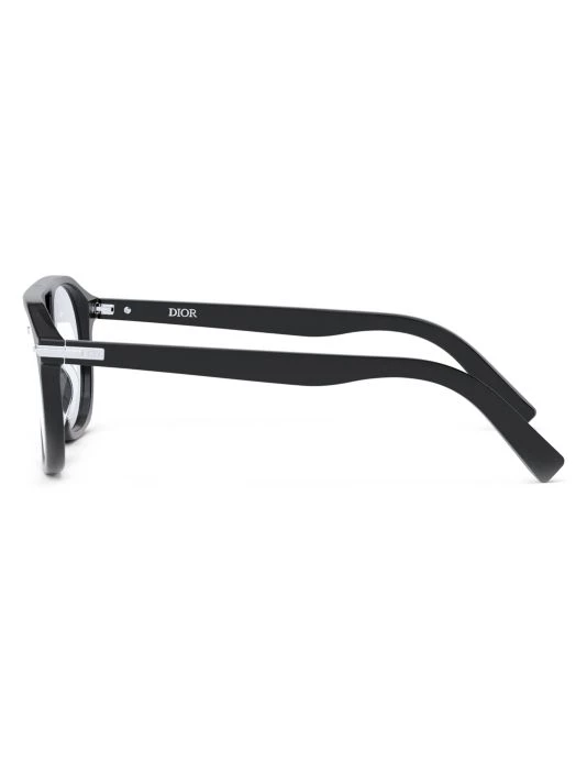 Aviator polished eyeglasses with metal lines in relief on the frame in a retro design, finished with Christian Dior signature at temples.