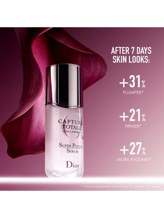 - Age-defying serum born from Dior’s 20 years of research on mother cells and its floral expertise, for more resilient, youthful and healthy glowing skin.
