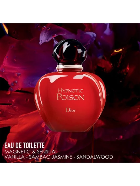 The magnetic seduction of Dior heightened by sensual and captivating vanilla. Exuding a brazen, conquering spirit, Hypnotic Poison Eau de Toilette is an intriguing warm floral fragrance that breaks with convention. 1 oz. Made in France.