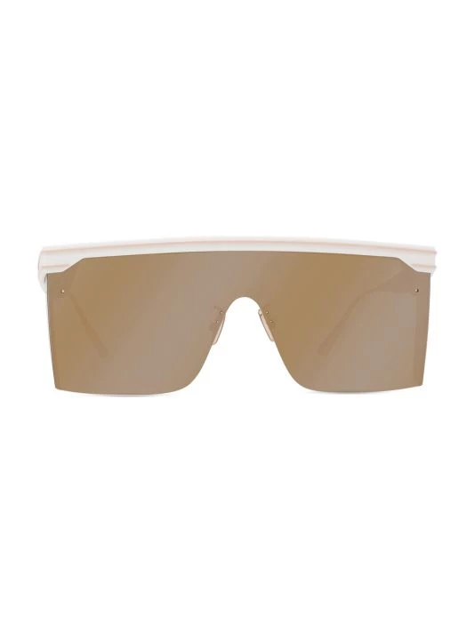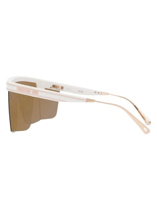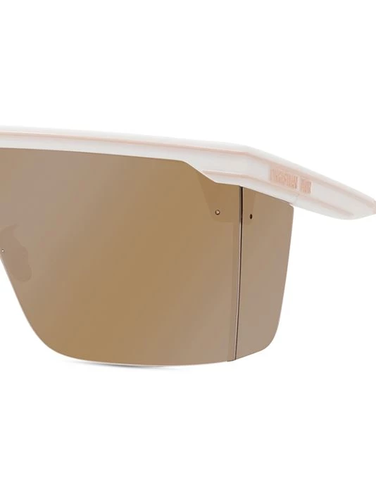 A sleek mirrored single lens sits atop the nose with these injected shield sunglasses.