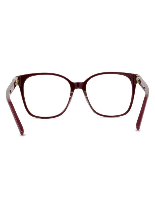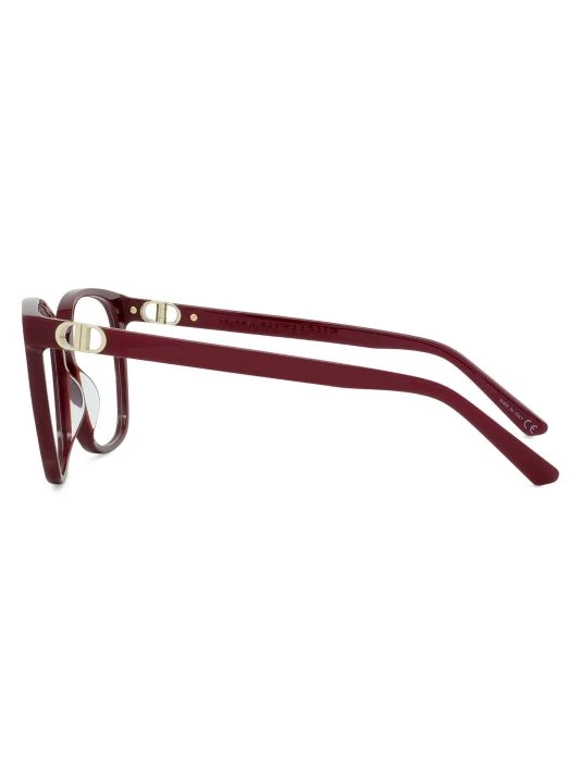 Square polished eyeglasses decorated with logo initials at temples.