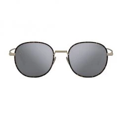 These shiny gold metal sunglasses feature a hand-applied havana acetate windsor rim on the front and silver mirror lenses.