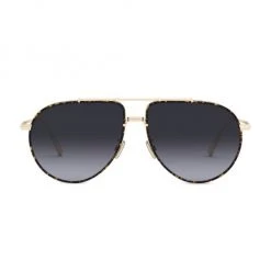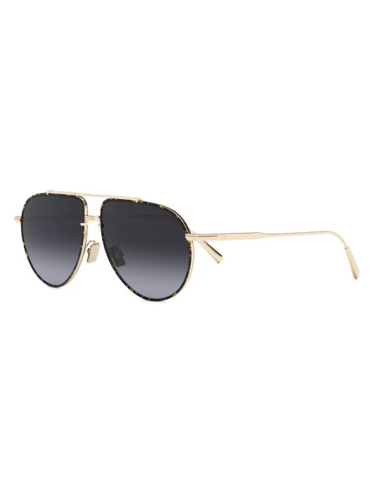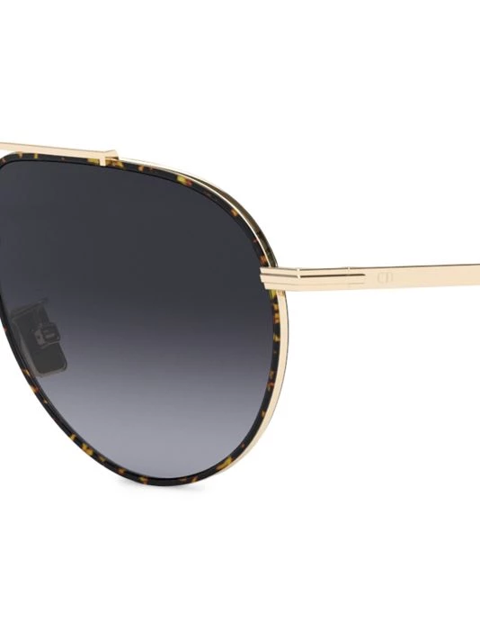 A goldtone metal rim featuring a tortoise design elevates these Dior pilot sunglasses.