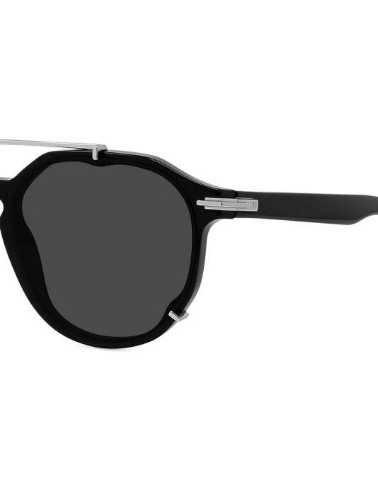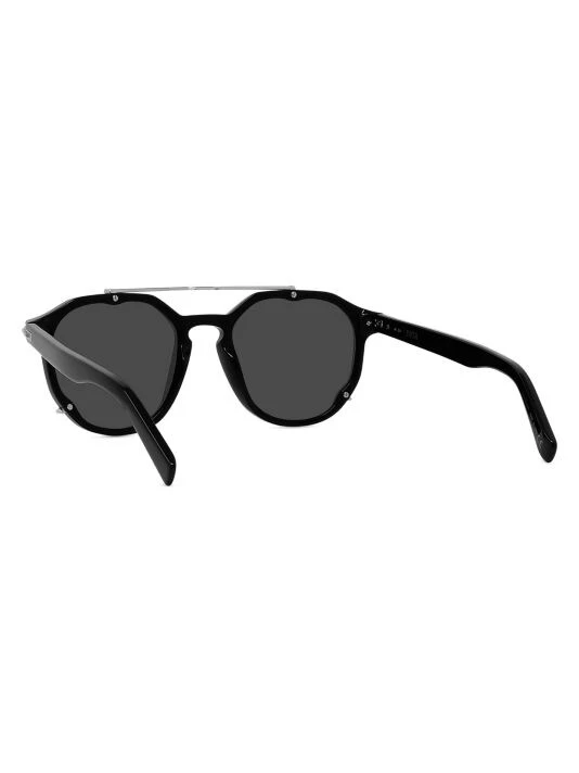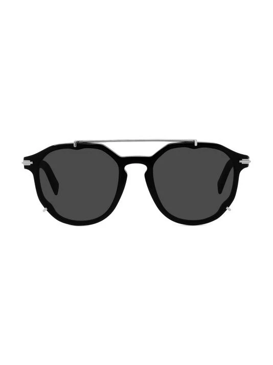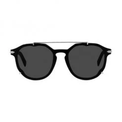 The DiorBlackSuit pantos shiny black front and temple acetate sunglasses feature solid smoke lenses.