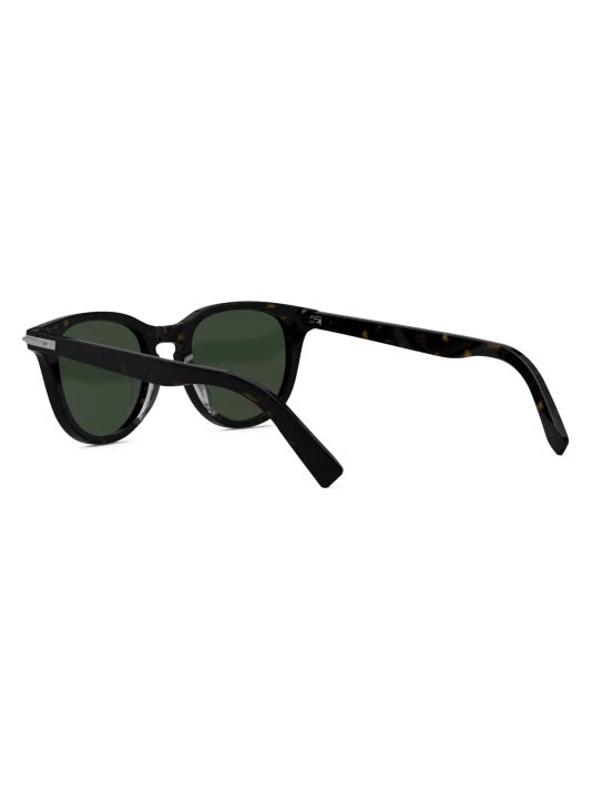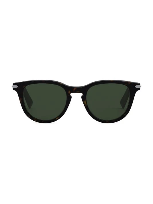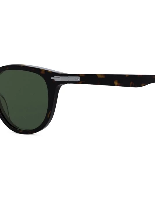 Pantos-style shiny dark havana acetate sunglasses with solid green mineral lenses.