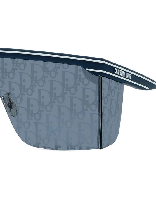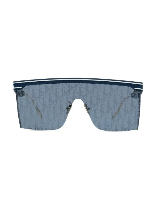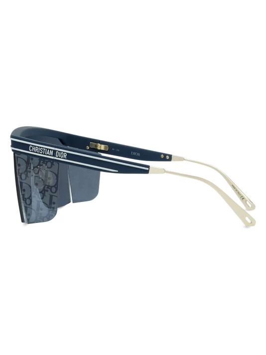 The DiorClub M1U sleek mask sunglasses in matte blue acetate feature a floating solid lens front with oblique logo print.