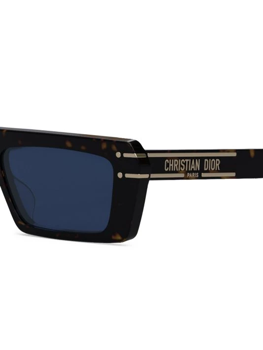 Polished rectangular sunglasses highlighted with metal dots at frame and signature logo bordered with lines at temples.