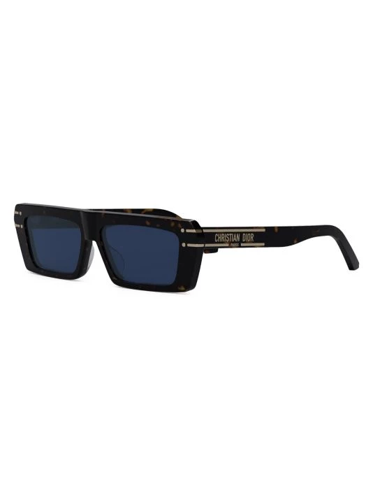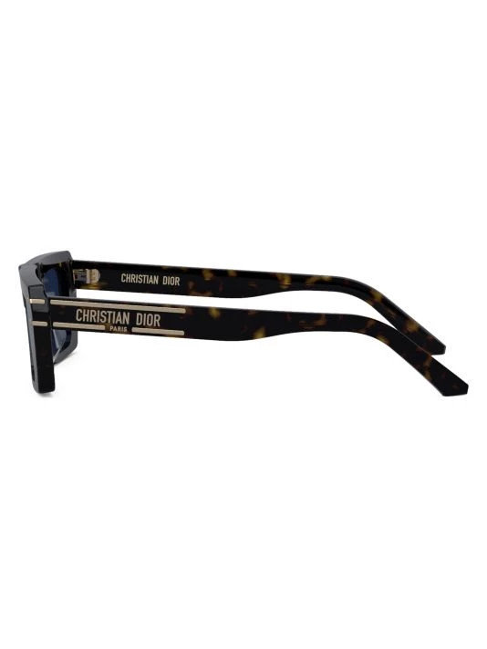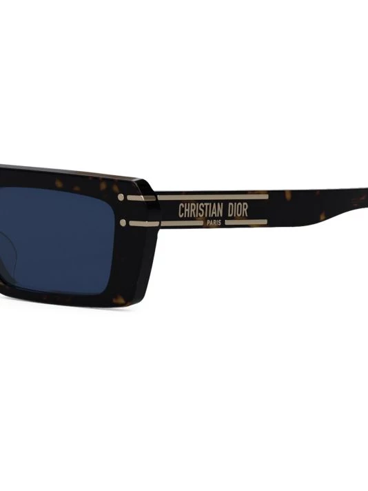 Rectangular polished sunglasses with metal dots and lines in relief on frame, finished with Christian Dior signature logo at temples.