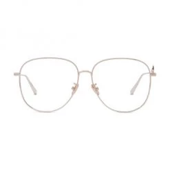 Aviator eyeglasses in a shiny metal finish with rounded and curved 3D signature on the temple