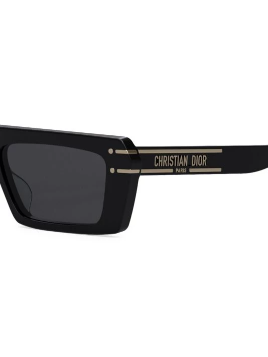 Rectangular-shaped flat-top sunglasses with chic lines and metallic logo detailing.
