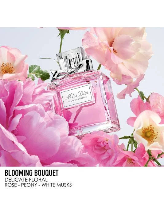 A floral springtime signature, perfect for a playful and irresistibly charming Miss Dior. Composed like a generous bouquet, Miss Dior Blooming Bouquet Eau de Toilette reveals a tender heart of Peony and Damascus Rose. A poetic trail edged with White Musks rounds off this Dior perfume for women. Designed like a dress embroidered with blooms, this Miss Dior perfume pays tribute to Christian Dior’s legendary love of flowers. 3.4 oz. Made in France.
